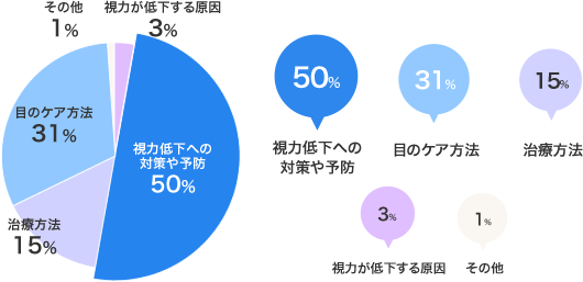 レーシックに関心を持つ理由としては、眼鏡をしたまま運動がしづらいといった、 日常生活に不便や不満を感じることや、眼鏡やコンタクトを一生使い続けることで発生するコストに不満を持っている方も多く見受けられます。