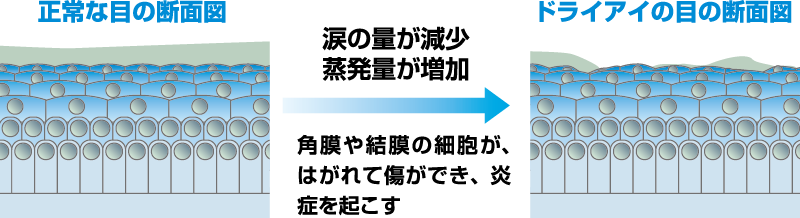 レーシック手術後には、一時的に乾燥感や異物感が出ることがあります。その背景には、角膜知覚神経の一時的な低下や、涙液の不安定化、眼表面のバリア機能低下などが関与すると考えられています。