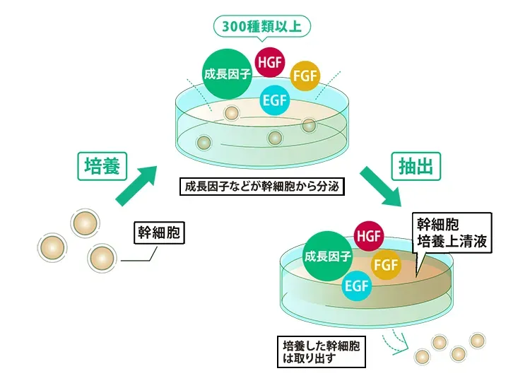 当院では、術後ケアの補助としてスーパーネイタントフルイドを使用しています。スーパーネイタントフルイドとは、細胞を培養した際に得られる上澄み液で、さまざまな分泌因子を含む可能性が報告されています。