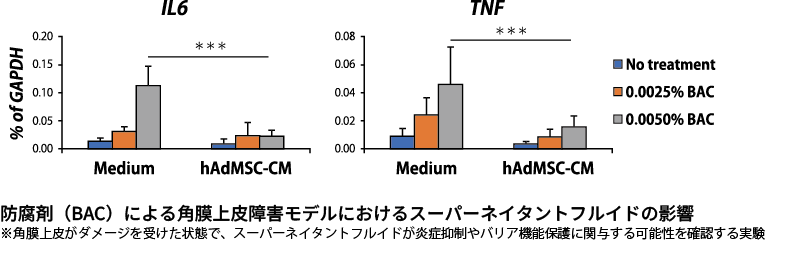 角膜上皮障害モデルでは、炎症に関係する因子の発現が抑えられたとの報告があります。